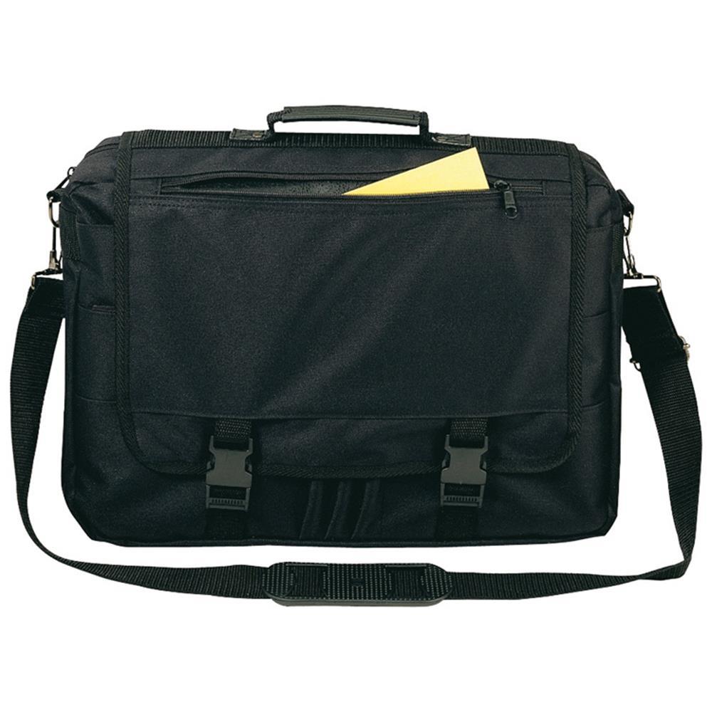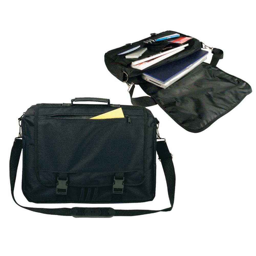 Laptoptasche aus strapazierfähigem Polyester mit diversen Fächern, Dehnfalte und Schultergurt. Ihre Werbung wird unterhalb des Reißverschlusses angebracht.